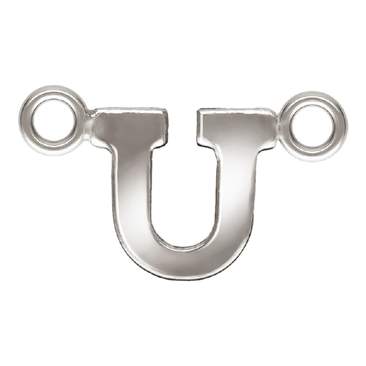 Initial U Block Style Letter Connectors 8mm (3 pcs) - Sterling Silver