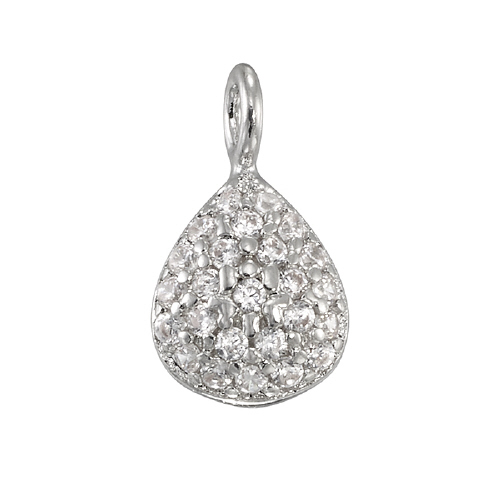 Pear Shape Charm w/Cubic Zirconia (CZ) - Sterling Silver Rhodium Plated