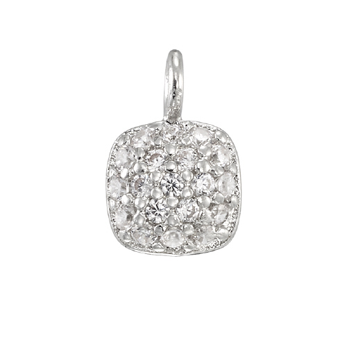 Square Charm w/Cubic Zirconia (CZ) - Sterling Silver Rhodium Plated