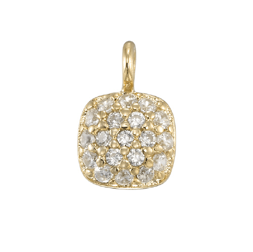 Square Shape Charm w/Cubic Zirconia (CZ) - Sterling Silver Gold Plated