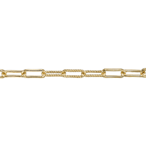Paperclip chain with 1 textured and 1 plain 2.2 x 5.6mm links - Gold Filled