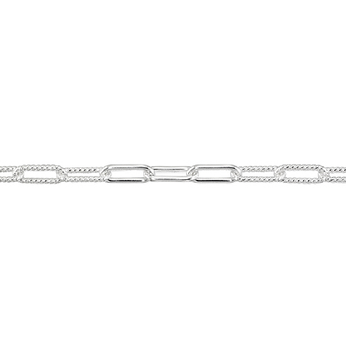 Paperclip chain with 3 textured and 3 plain 2.2 x 5.6mm links - Sterling Silver