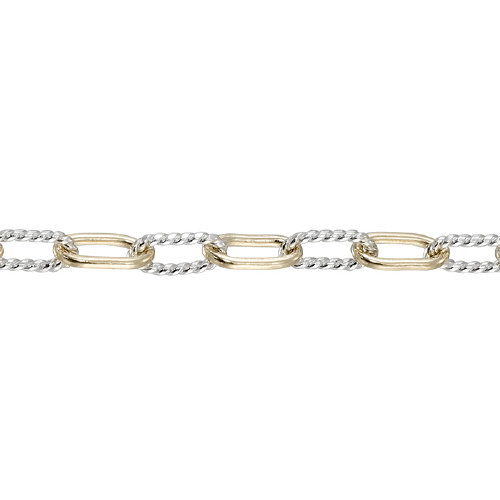 3.1 x 6.2mm Fancy Plain Gold Filled & Textured Sterling Silver Alternate Paperclip Chain Two Tone